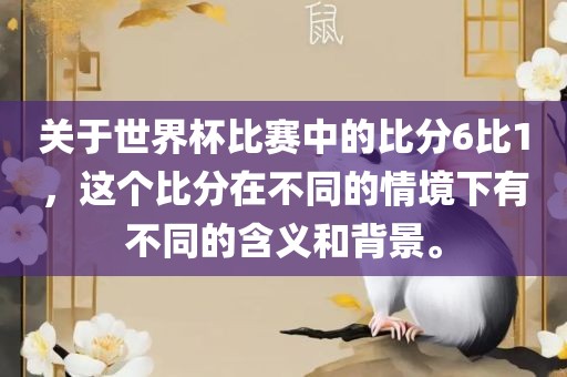 关于世界杯比赛中的比分6比1,这个比分在不同的情境下有不同的含义和背景。