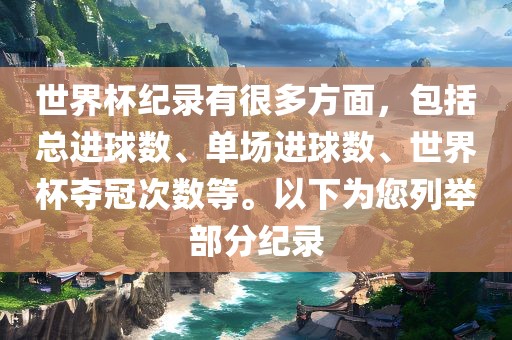 世界杯纪录有很多方面,包括总进球数、单场进球数、世界杯夺冠次数等。以下为您列举部分纪录