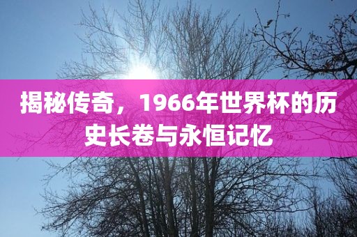 摘要:本文将带你走进历史的长卷,探寻传奇的源头,回顾1966年世界杯足球赛的精彩瞬间。这场比赛不仅留下了无数精彩瞬间,更成为了一代人心中的永恒记忆。本文将为你揭示这一历史时刻背后的故事,重温那段充满激情与荣耀的岁月。